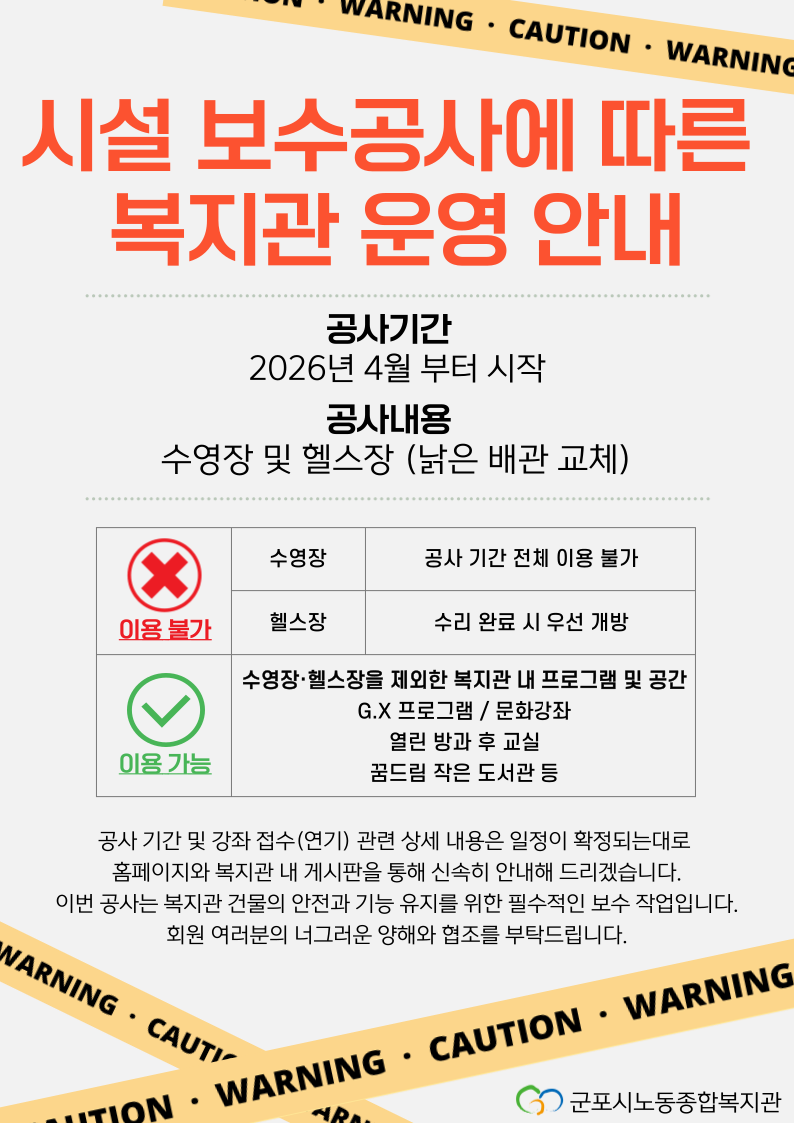 시설보수공사에 따른 복지관운영안내