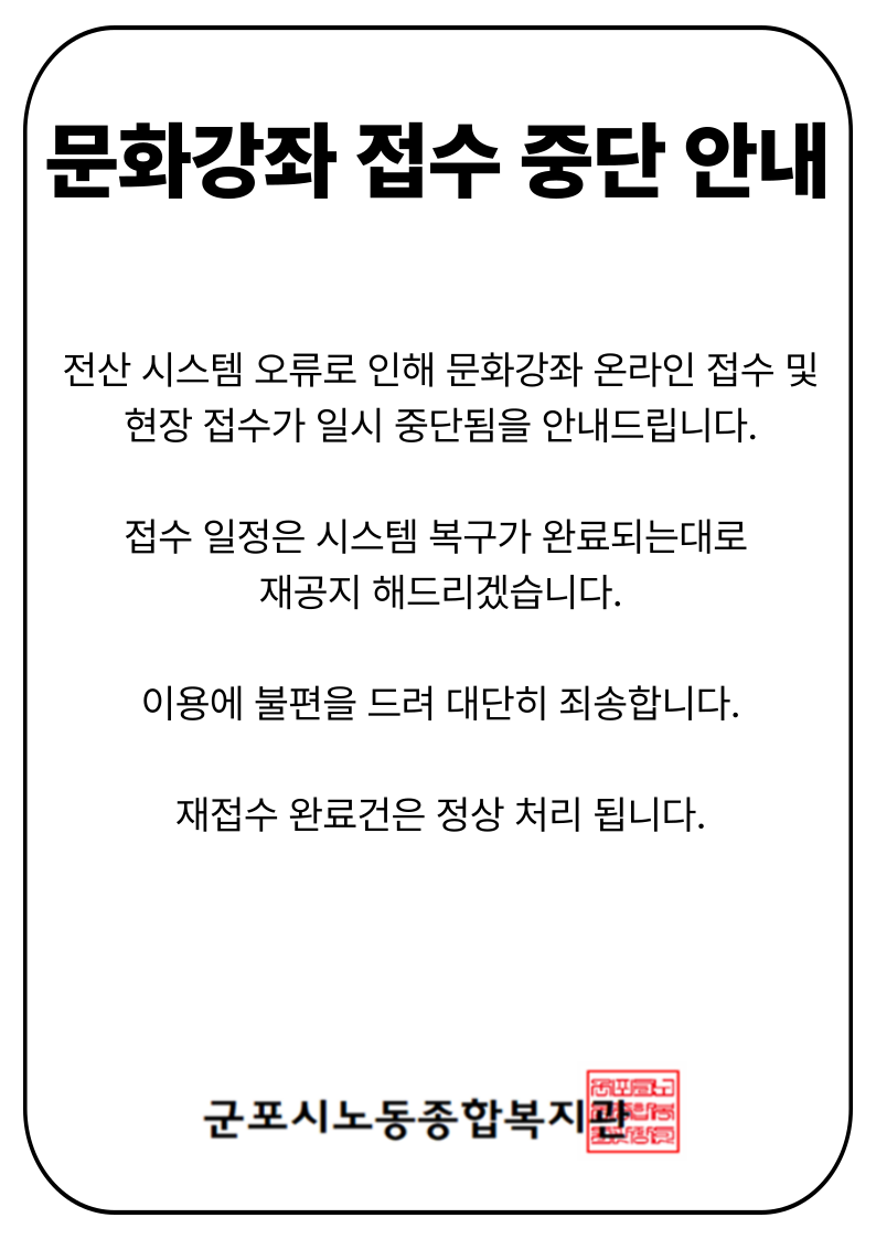문화강좌 접수 중단 안내