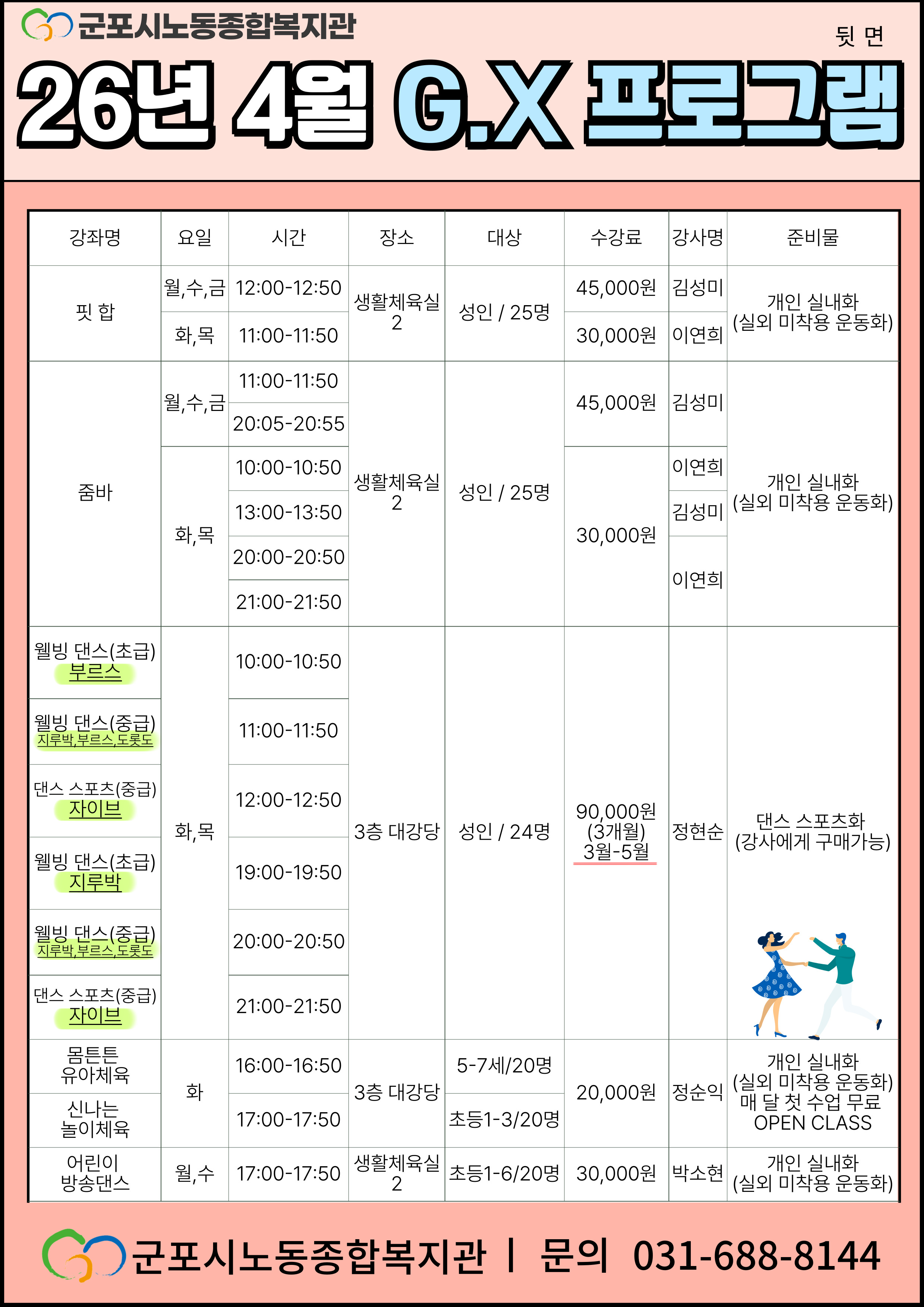 [G.X프로그램] 26년 4월 G.X프로그램 수강생 모집